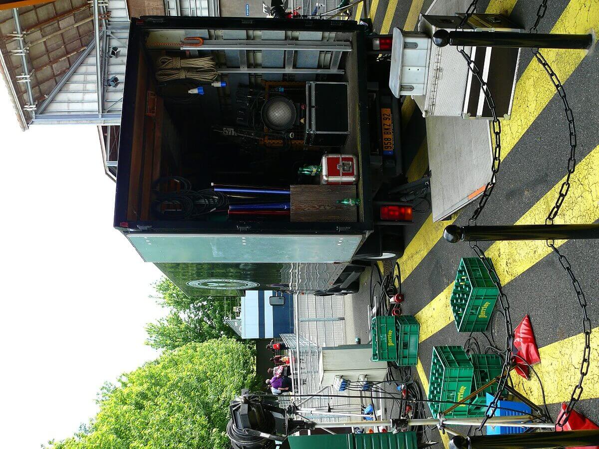 An area on the site of a film studio on which an outdoor set is built is called a Backlot. As a rule, only the facades of buildings are erected, which saves time and costs. In this way, outdoor scenes can also be shot on site.