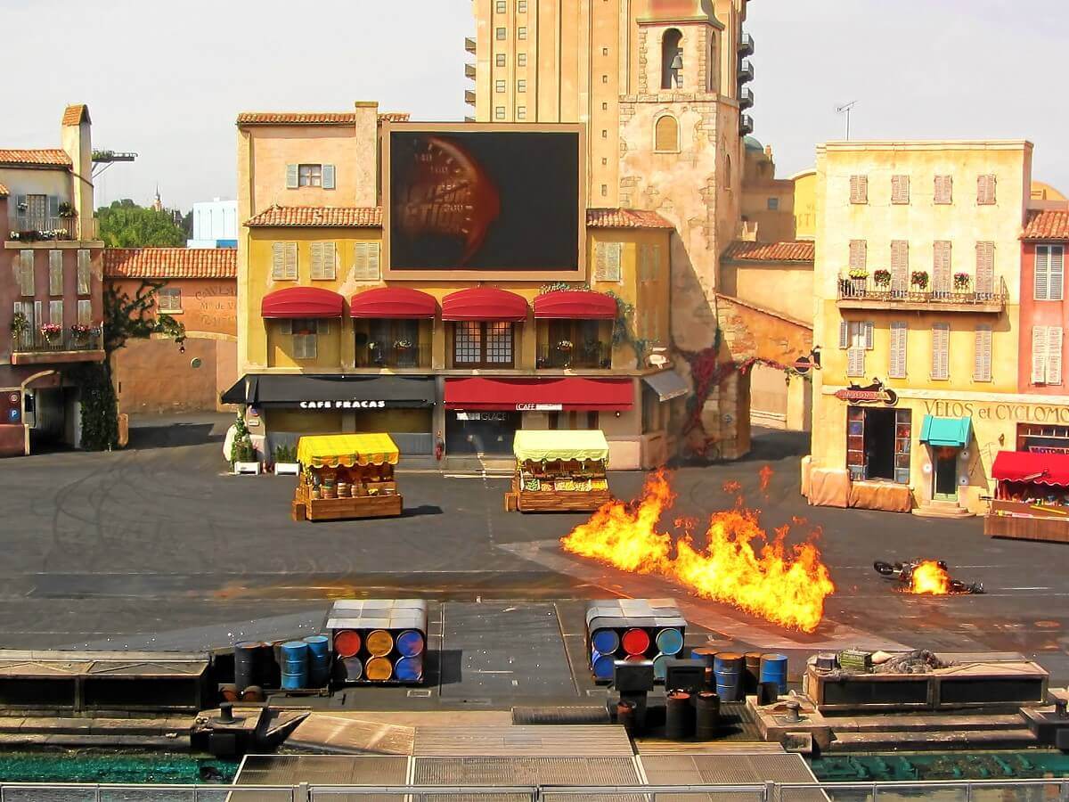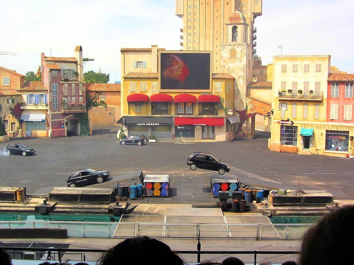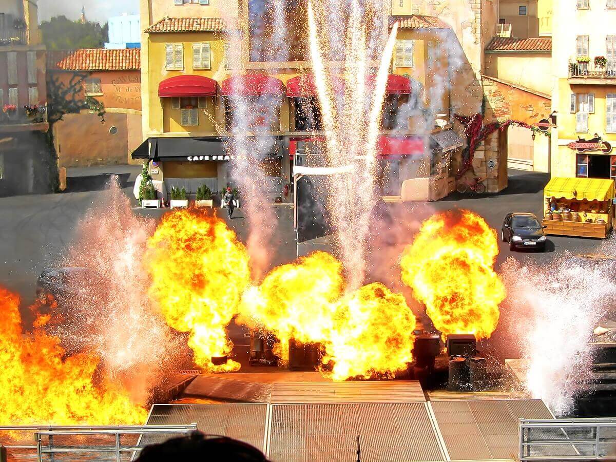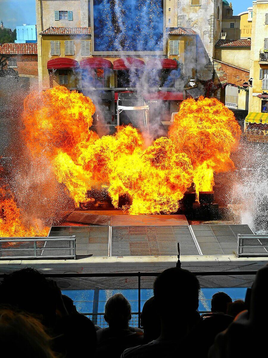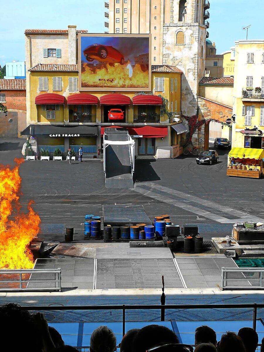If you have survived the visit to the recording studio, there is even more action. This time, however, it is more to watch: the Stunt Show arena is just around the corner. This is where daring stuntmen put their skills to test several times a day.