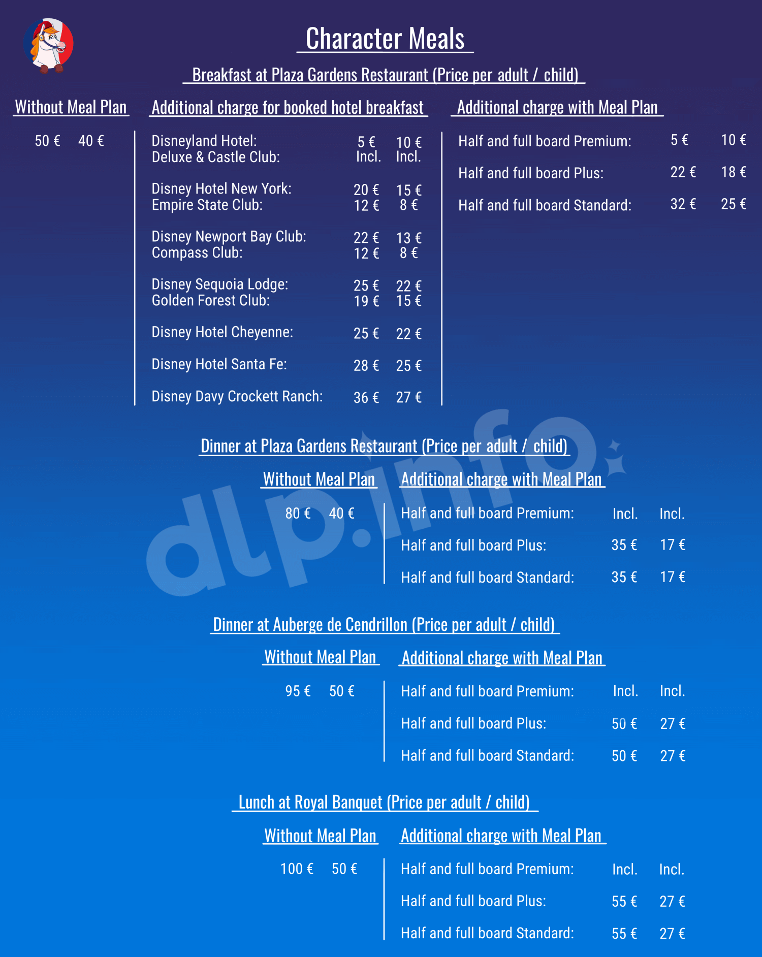 - Do you queue up at the meet & greets in the parks during the day to take photos with your favorite character and get an autograph? Or are the waiting times there always too long and you are annoyed that you still do not have a photo with Mickey Mouse? Then a meal in the company of Disney characters is perfect for you! Here 5 to 8 Disney characters come to your table, one after the other, talk to you, have fun, have their picture taken and of course also sign autographs. Everything is relaxed and without much waiting.
