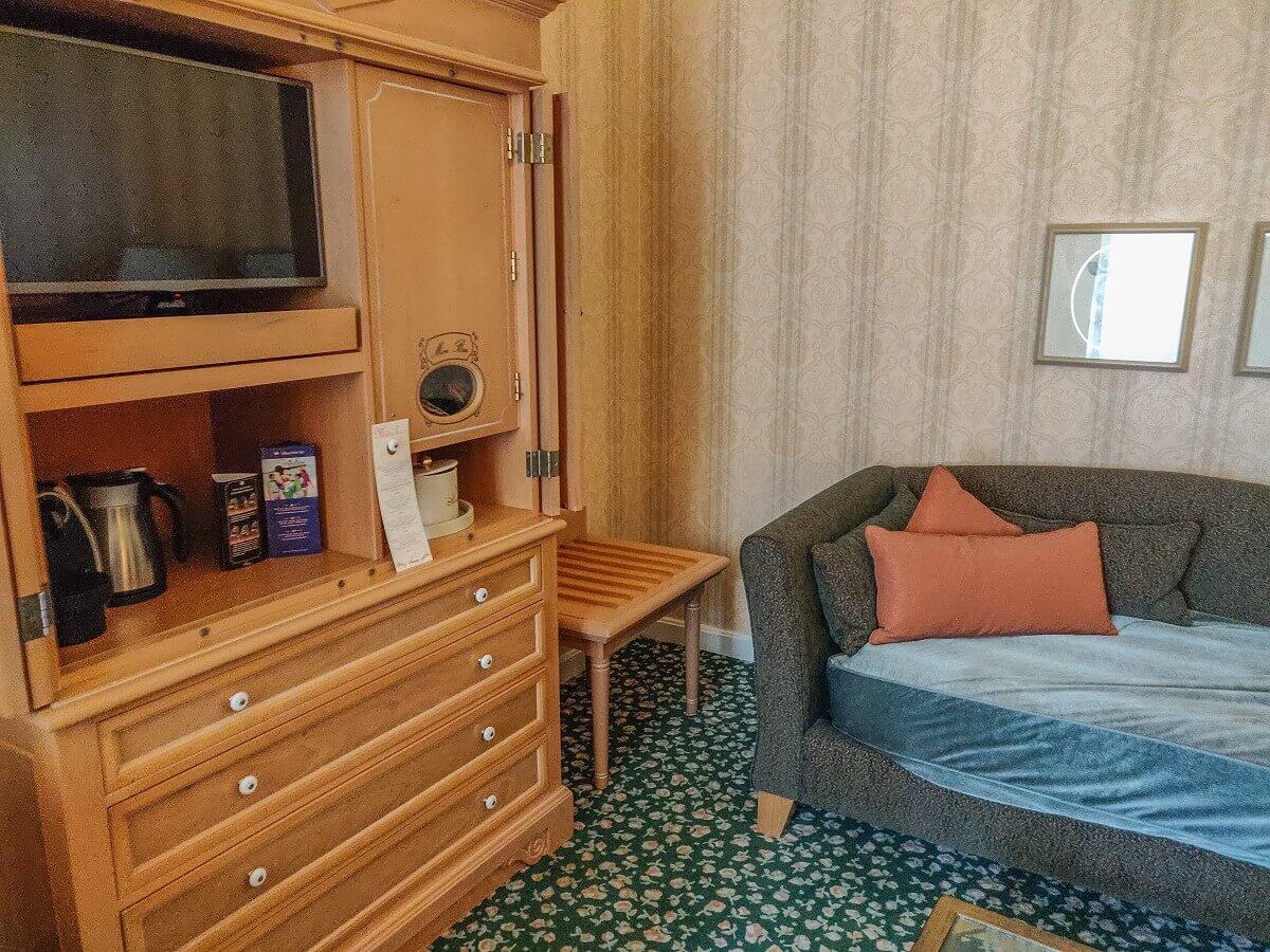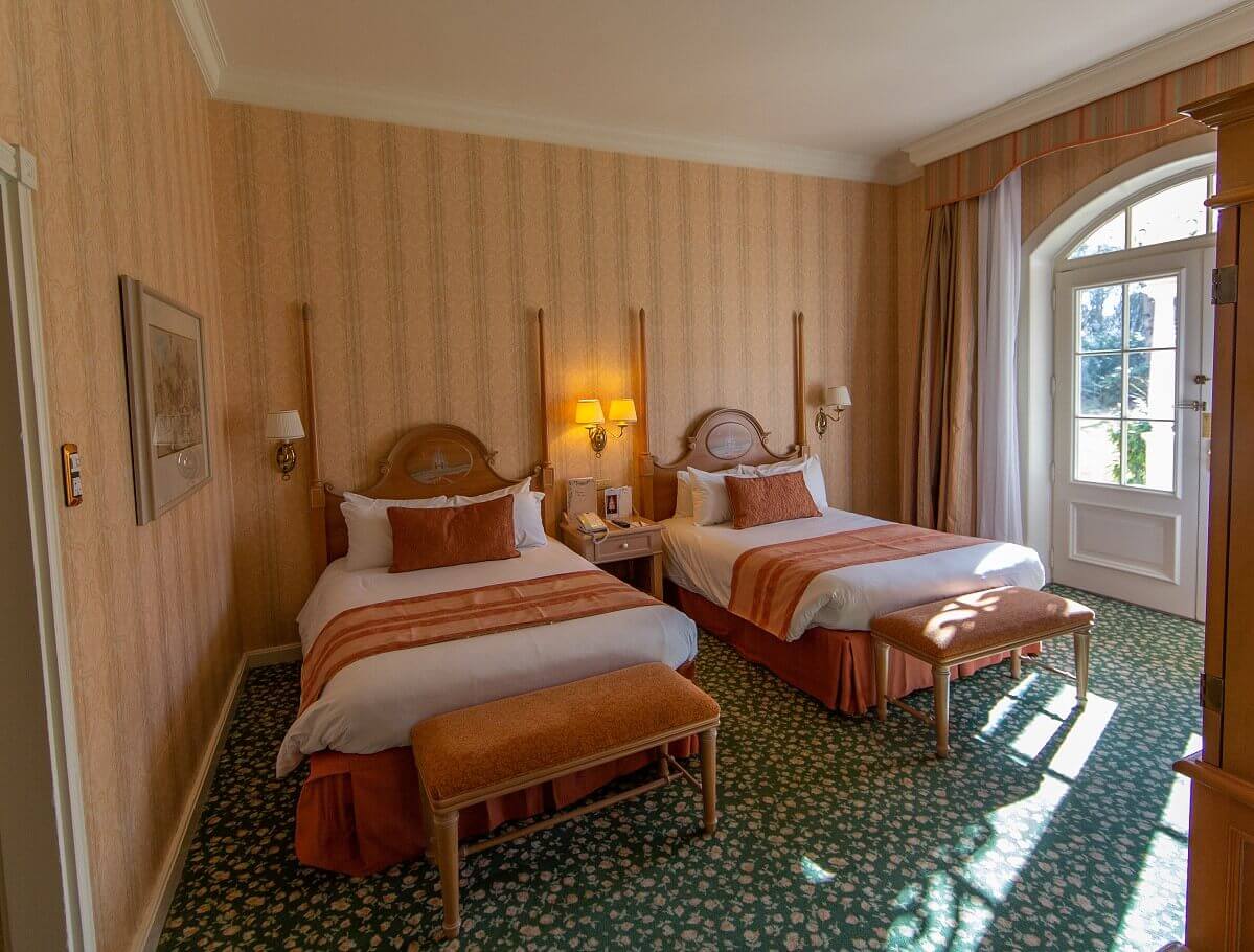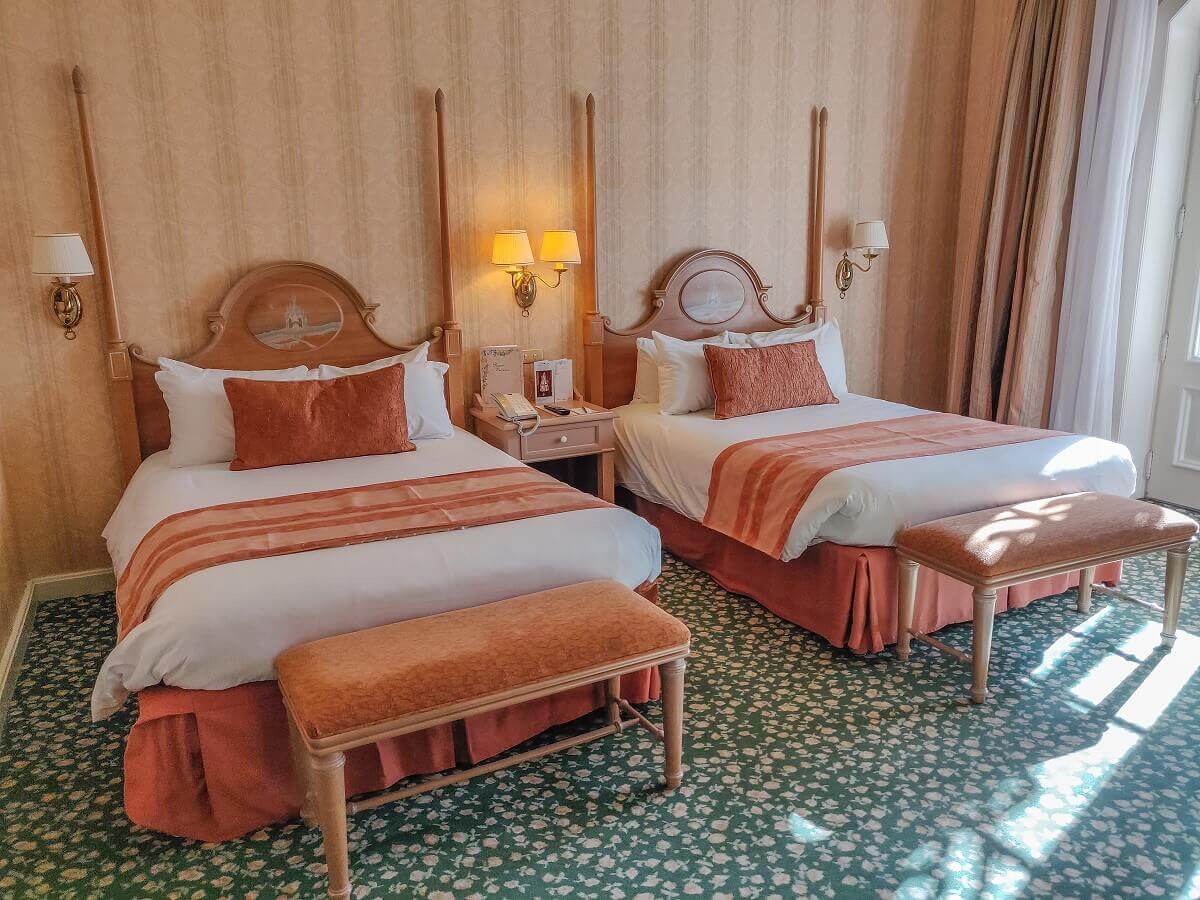 The classic rooms at Disneyland Hotel are equipped with two double beds, so up to four people can stay in one room. There are also special family rooms that can accommodate up to six people.